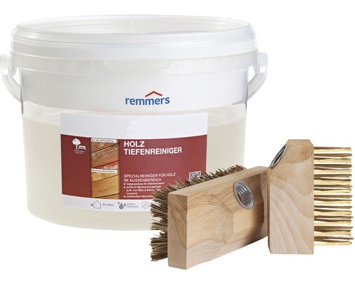 Kiszerelés(szett): 2,5 l Holz-Tiefenreiniger tisztítószer, 1 db Remmers-Spezial-Schrubber speciális súrolókefe, 1 db Remmers-Spezial-Bürste speciális kefe a mikro bordákhoz